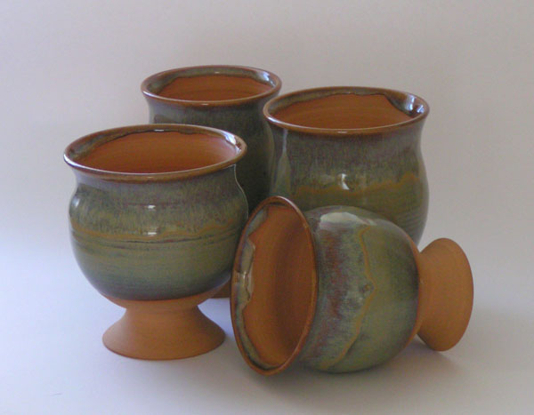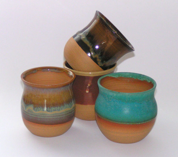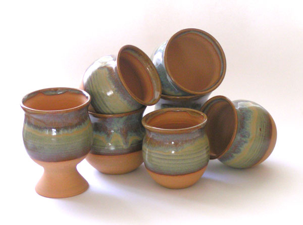 In the olden days...before history began, primitives, tent people and nomads the world over discovered that if you didn't drink up the juice from squashed grapes before the expiry date, a miraculous transformation occurred. Early revelers stored their wines in the only containers ready at hand...unglazed earthenware pots. They were unaware that their crude vessels absorbed acid from wine, allowing the rich fullness of its flavours to emerge. Little could they imagine that future developments for the purpose of storing and serving their favourite libation would, in fact, detract from its flavour! Through millennia of diddling...most cultures have forgotten that wine served in unglazed earthenware tastes ever-so-much smoother and significantly more savoury than wine served in such upgrades as glazed crockery, glass or metalware. Now, with these unglazed cups, you too, can discover that ancient secret to eliminating the acid edge of wine, while preserving its robust flavour. from Indra Dosanjh with permission. |